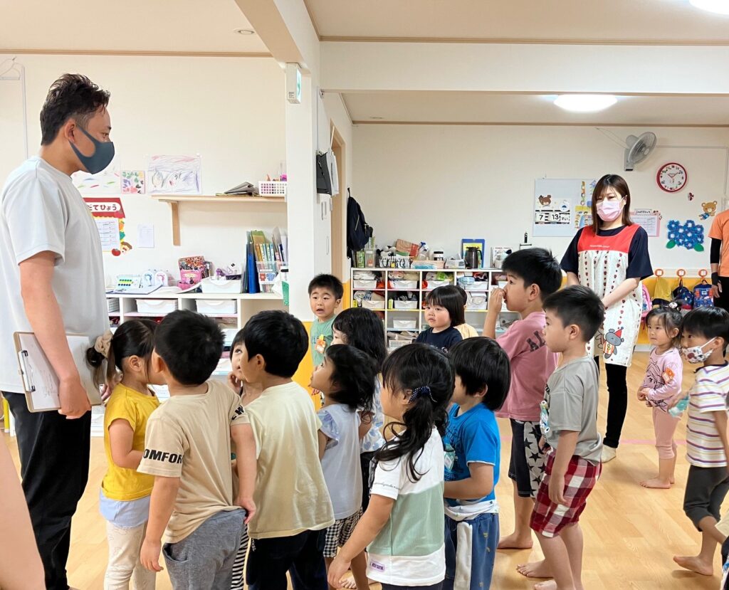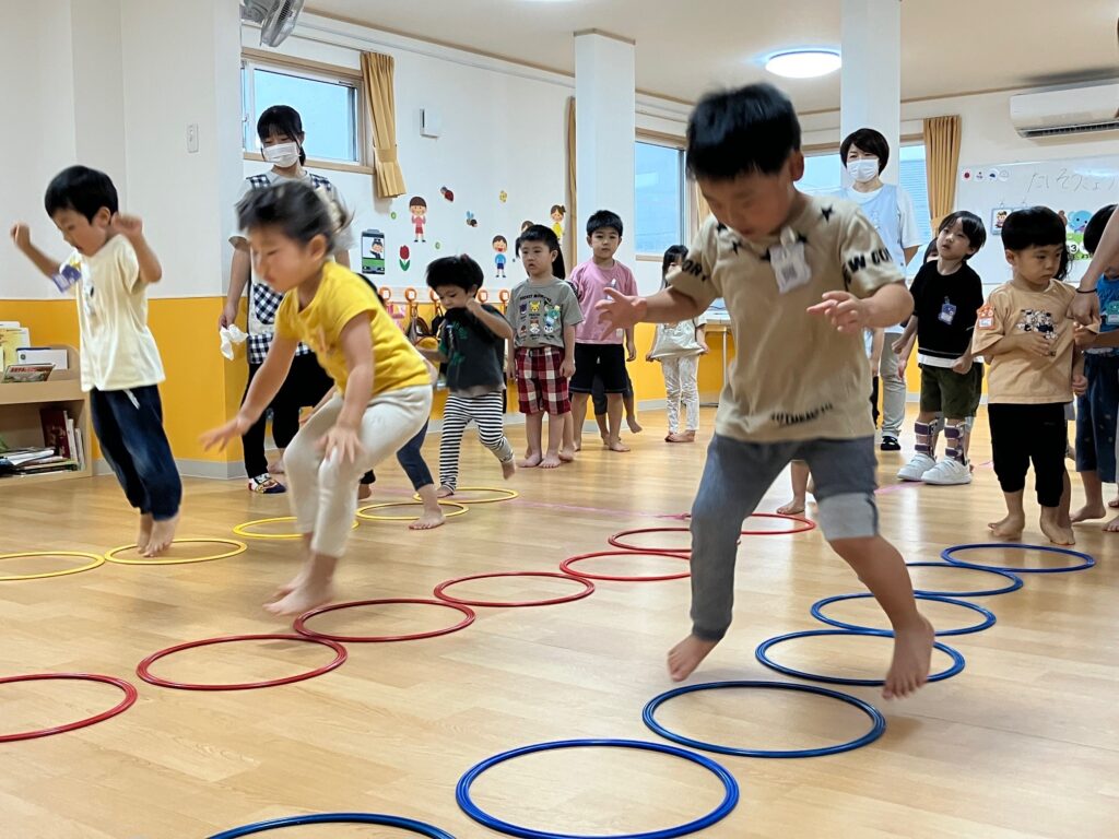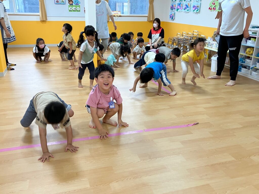 7月に入り、きりん組・くま組・ぞう組の第一回目の運動教室を行いました。