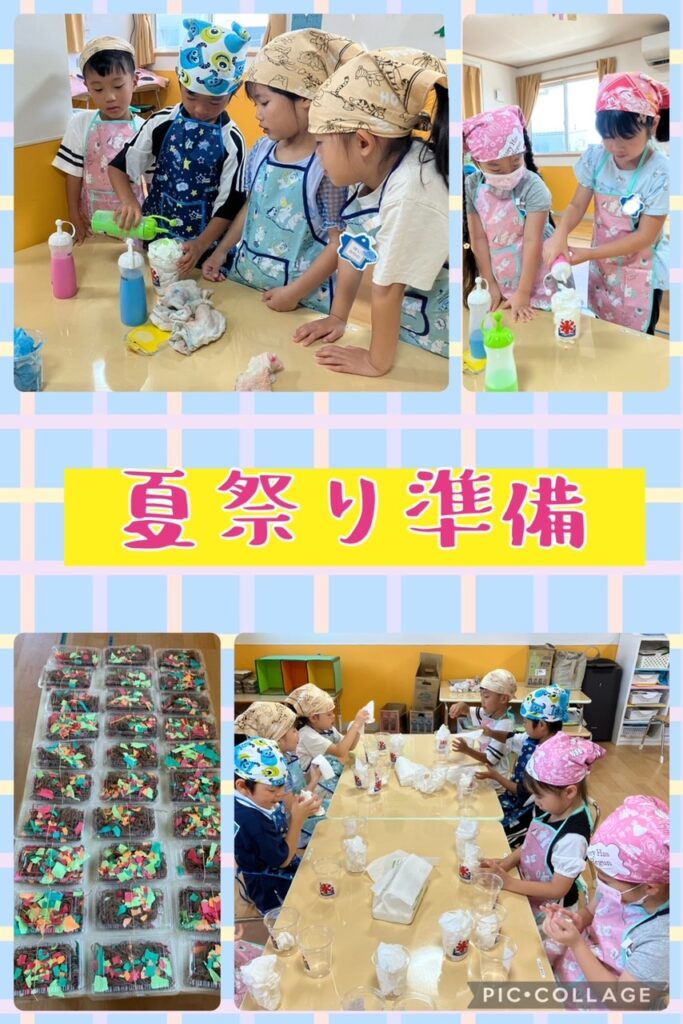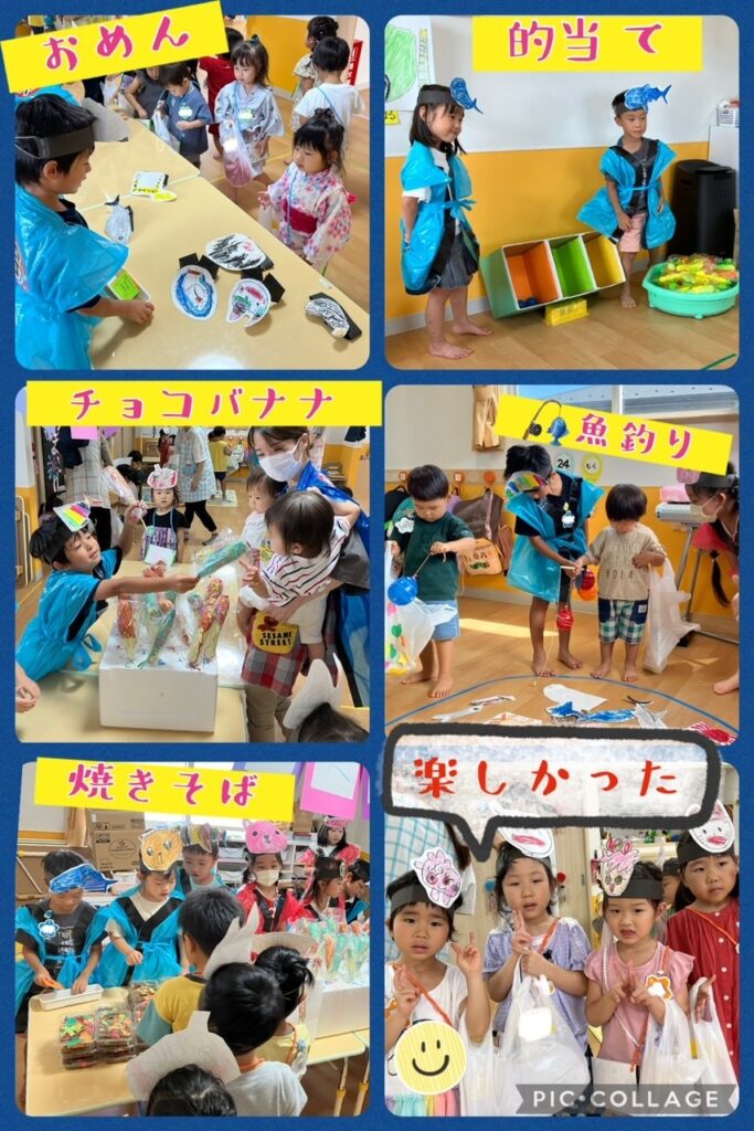 かき氷 焼きそば チョコバナナ 魚釣り お面 を一つ一つ手作りしました。