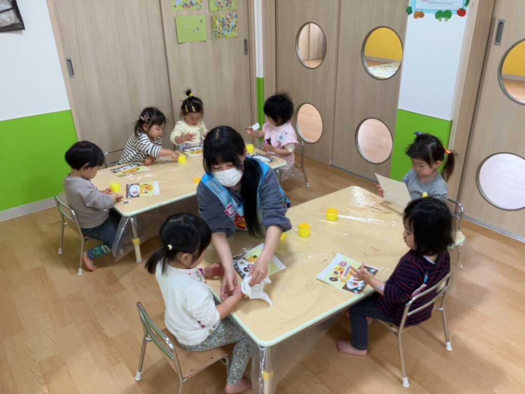 ぱんだ組さんは、絵の具やシールなど様々な制作を楽しみました。とても真剣な表情可愛いですね🌟
