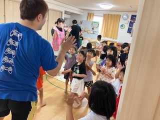 初めは人見知りをしていた子ども達もたかひろ先生に褒められると笑顔になり張り切って取り組むようになりました。