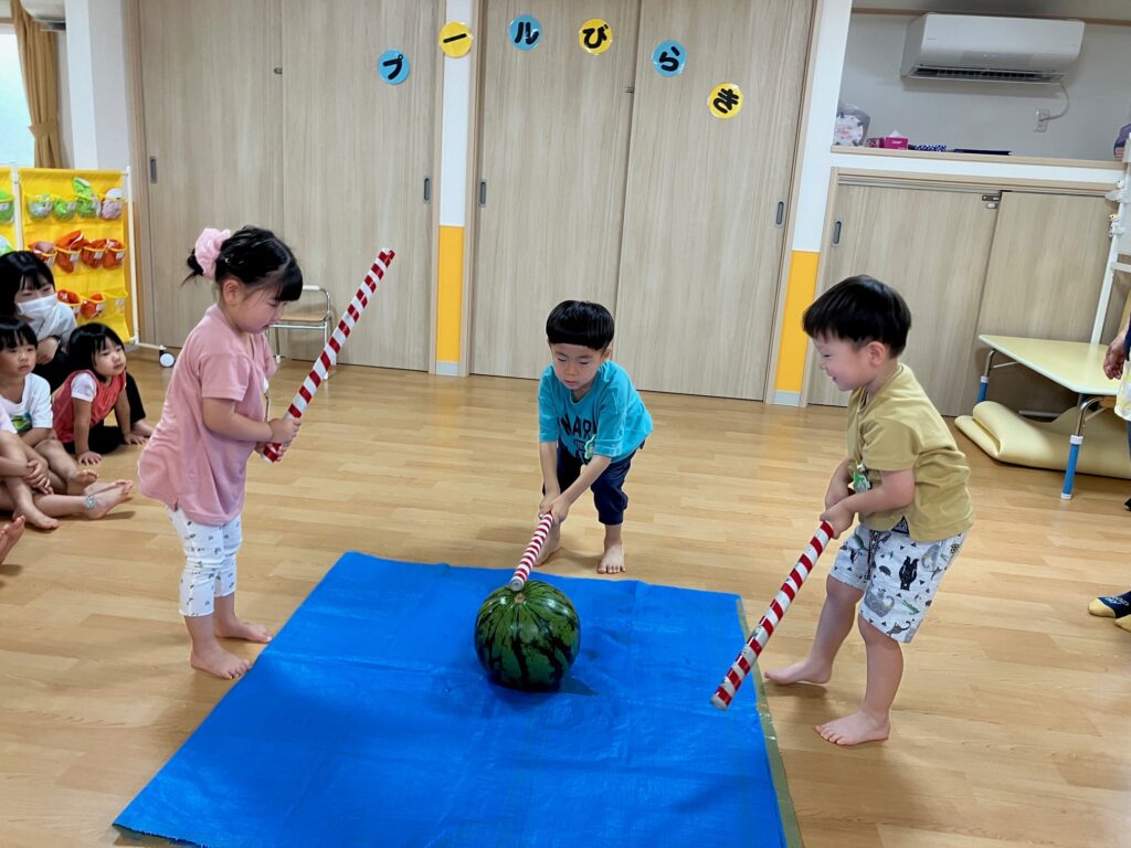 今月は1日にプール開きを行い、子ども達が楽しみにしていたスイカ割りを行いました🍉
