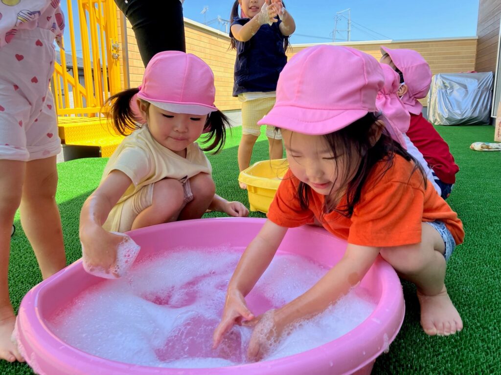 きりん組はどんどん増える泡に興味深々、「何を作ろうかな~?」