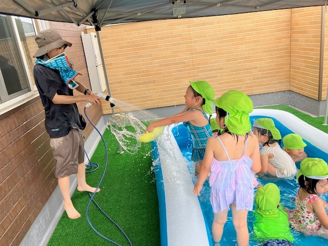 30.0℃を超える暑い日が続いていますが、子ども達は元気いっぱい!!室内で過ごす日も多いですが水分をこまめにとりながら、楽しく過ごしています。