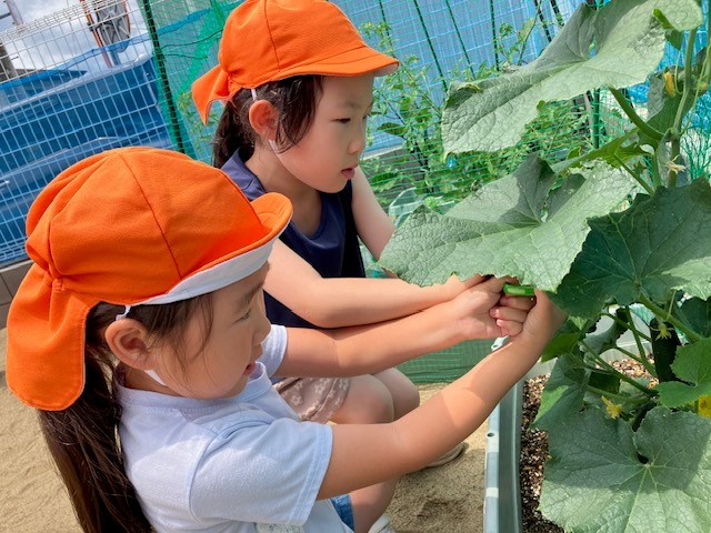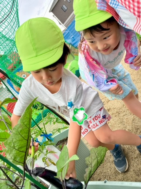 園庭の野菜たちもぐんぐん大きくなり毎日のように収穫してます🍆🥒🫛