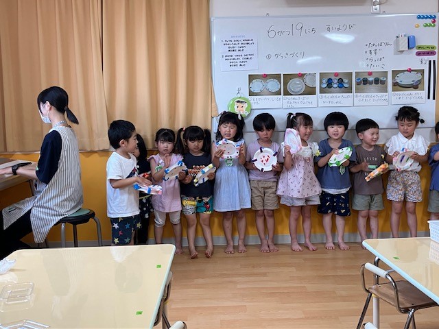 6月は保育参観がありました。お家の人が一緒ということで朝から嬉しそうな子ども達😊