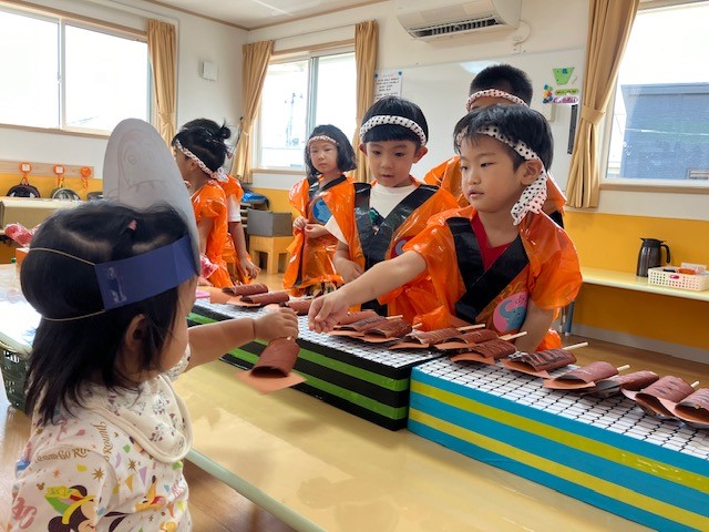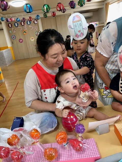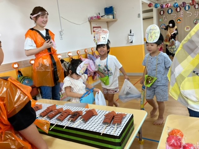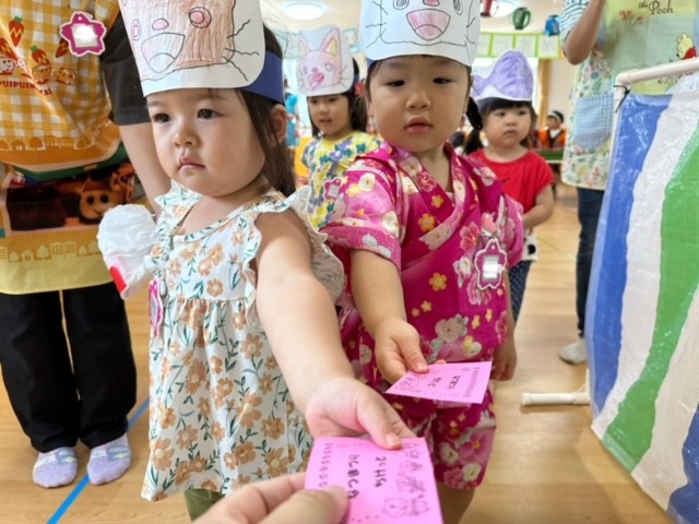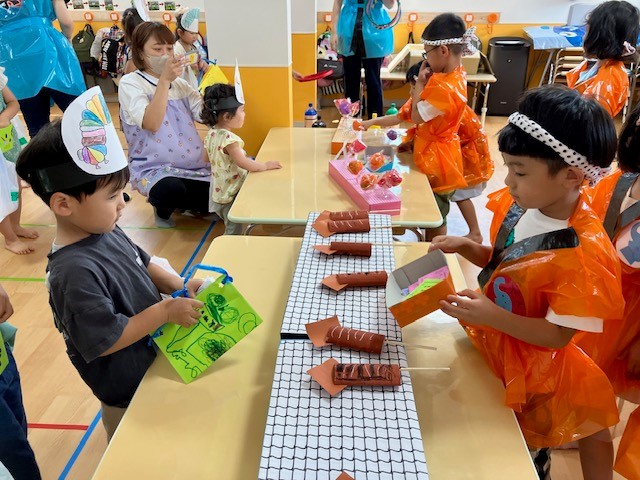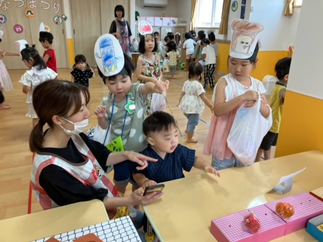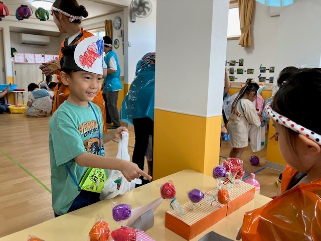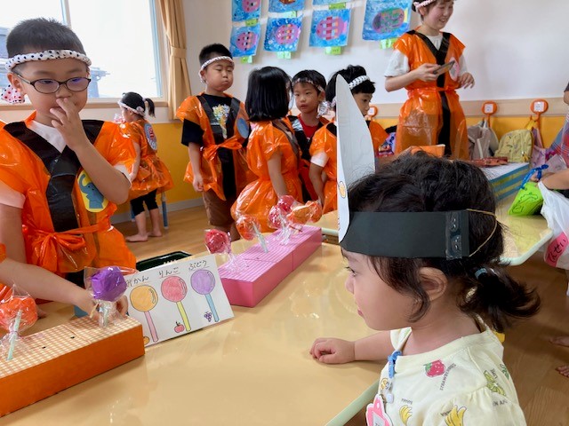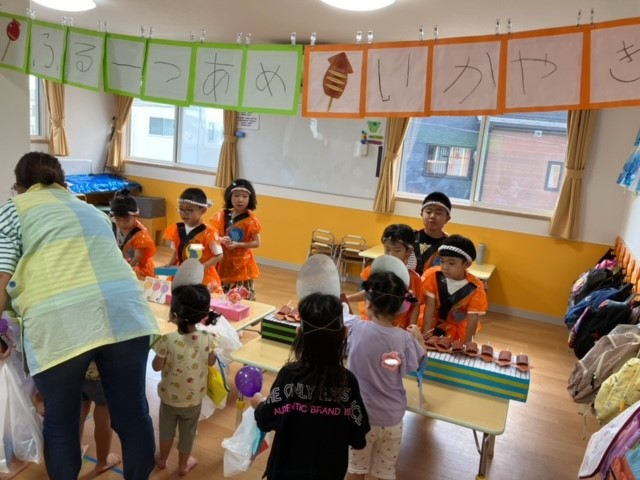 どんなお店にするのか?どうやって売るのか?など子ども達で意見を出し合って進めてきた今回の夏祭り。ぞうくみさんは年長児としてみんなのお手本となり自信にもつながったことでしょう✨ おつかれさまでした😊