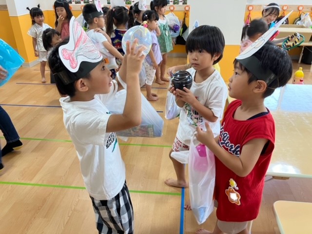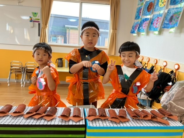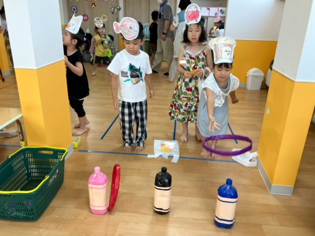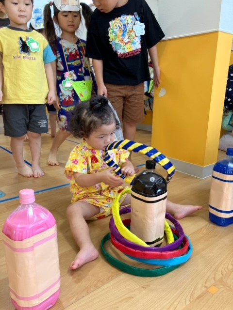 全員が終わった後にぞう組もお客さんになりもう一度お店まわりをしました。子ども達は友だち同士で景品を見せ合ったり、輪投げや虫釣りの新記録を目指して再チャレンジしたりとお給食の時間まで思いっきり楽しんでいました😁