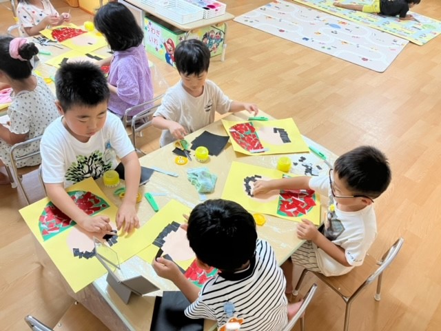 園で育てていた野菜たちも今年はたくさん実り、何度も収穫する事が出来ました🍆🍅🥒🫑今年の夏はとても暑く室内で過ごすことが多かった8月でしたが、園内では子ども達の元気いっぱいの声が溢れていました
