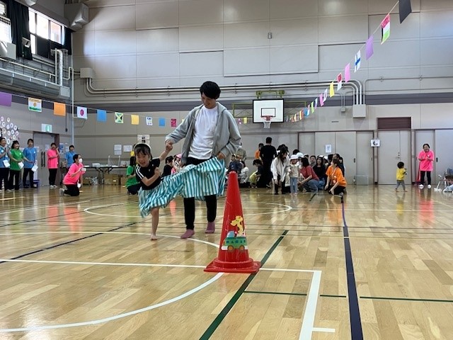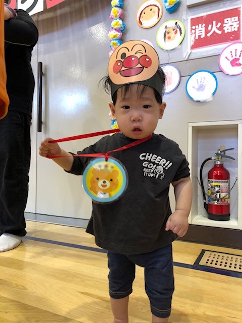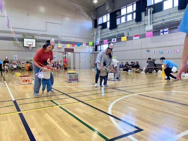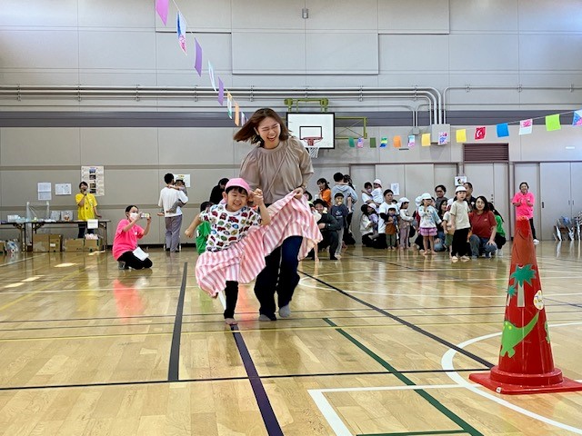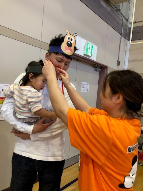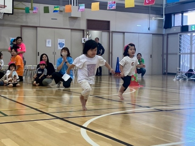 親子競技は、未満児クラスは親子でアンパンマン達に変身し、以上児クラスはデカパン競争🩳を行いました