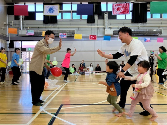 今年はパパチームVS職員の戦いもありました💪🏻 競技は風船割りリレー🎈 チームごとに気合を入れてからスタートです