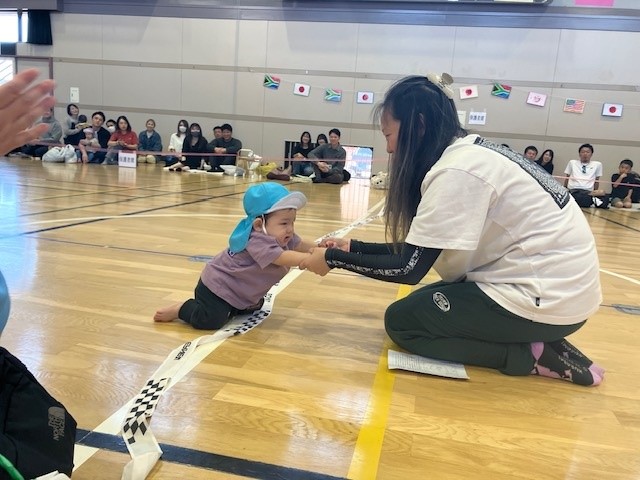 練習ではハイハイやトコトコ歩きができていたこあら組も本番ではお家の方に甘える姿が見られたり、スタートで座っていたのに「よーい、どん!」で急に走り始めるきりん組のお友だちがいたりと各クラスそれぞれに見どころがあったかけっこ😊