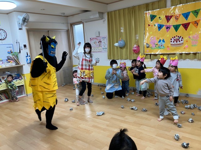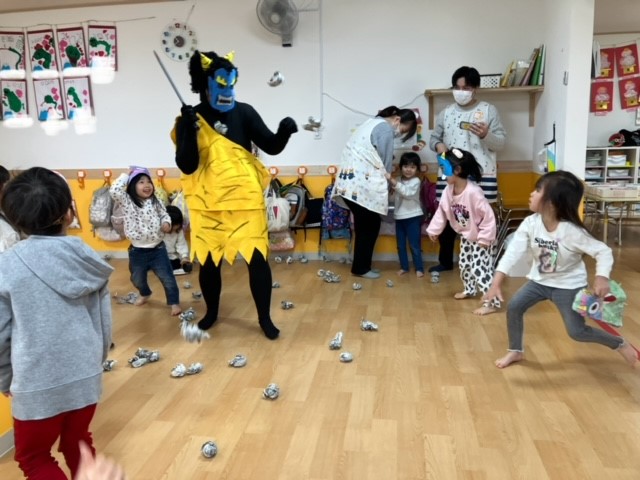 1月から鬼のお面を作ったり、豆まきの練習をしたりと本番に向けて準備をしてきた子ども達