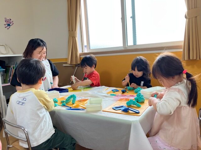 きりん組は以上児さんになり、自分の粘土、自分のクレヨンで嬉しそうにお絵描きや作品作りを楽しんでいます 自分の物を持つことで物を大切に扱うことや、自分で片づける習慣を経験していきます