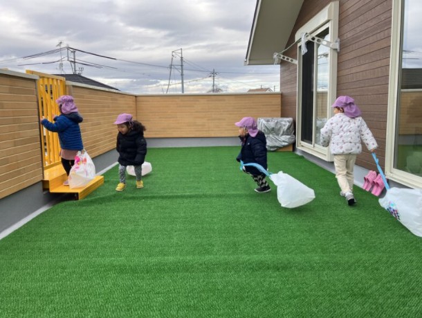 いつもよりも長い年末年始のお休みが終わり、子ども達が元気に登園してきました。おじいちゃん、おばあちゃんのお家に遊びに行った話や、お年玉でお買い物した玩具の話など嬉しそうに教えてくれました。