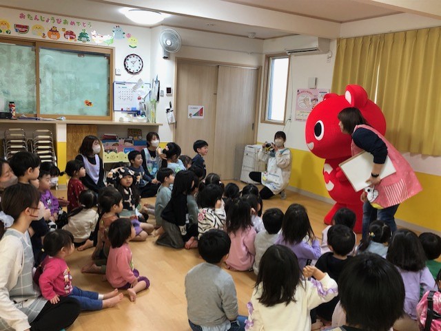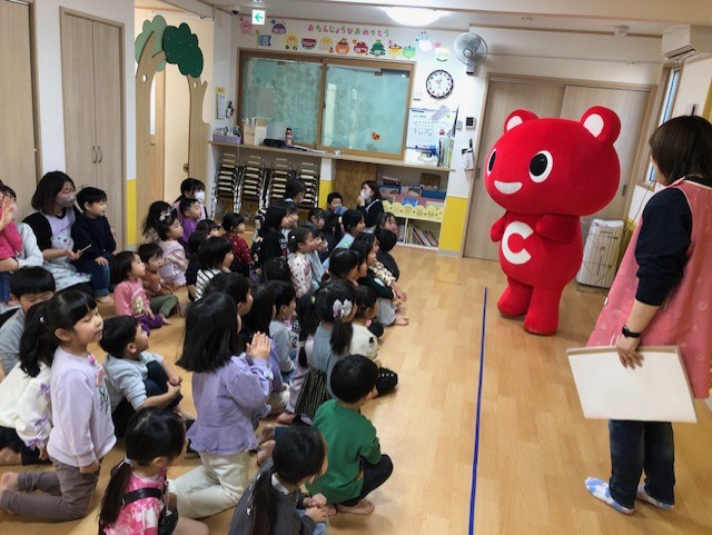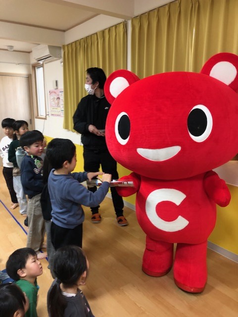 昨年子ども達に大人気だった生協のマスコットキャラこーすけ君が、今年も遊びに来てくれました。