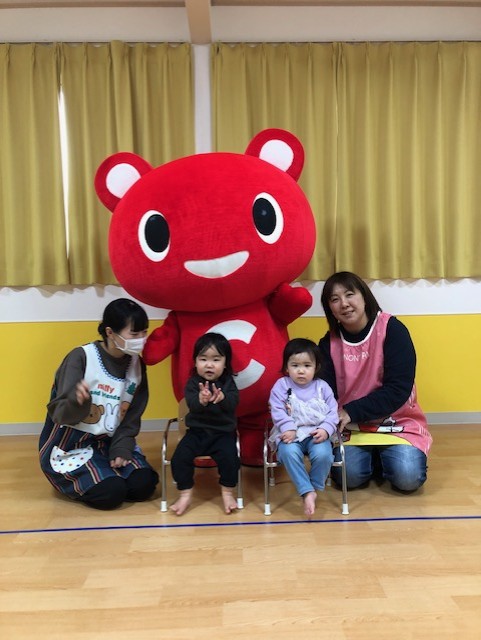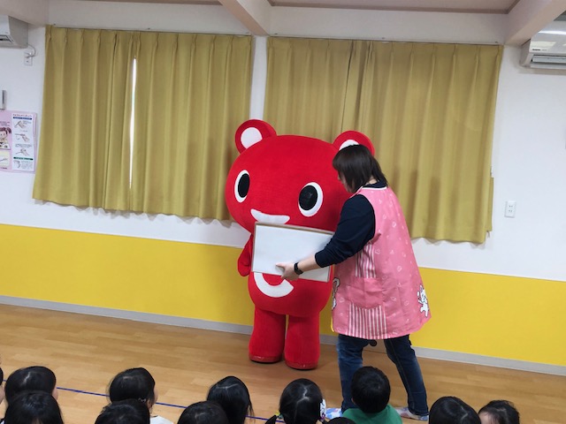 昨年も「通れるのかなぁ~💦」と心配だったホールの入り口も無事に通って、子ども達の前に来てくれたこーすけくん。子ども達も先生達もこーすけ君の登場にみんなが笑顔になっていました😊